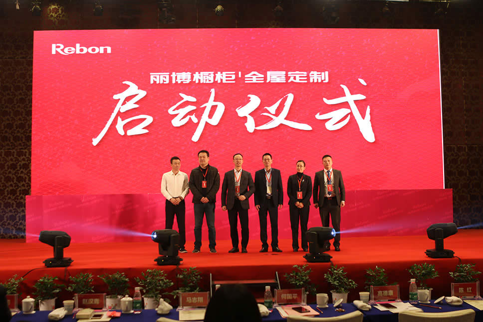 德意控股集團(tuán)董事長兼總裁高德康、麗博櫥柜總經(jīng)理何國平、浙江省家具行業(yè)協(xié)會執(zhí)行會長馬志翔、中國五金制品協(xié)會廚房設(shè)備分會秘書長趙汗青及采購總監(jiān)陳紅、麗博業(yè)務(wù)零售總監(jiān)胡國帥共同啟動麗博櫥柜丨全屋定制品牌啟動儀式按鈕,麗博櫥柜丨全屋定制正式啟航!