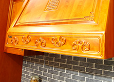 煙機封板圖案運用中國元素如意紋,喻義 “平安如意”、“富貴如意”,機罩上雕刻“!薄皦邸倍,寓意福壽雙全。
