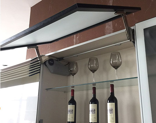 輕輕觸碰金屬觸摸板,百葉窗式玻璃門板便自動升起、降落,開啟省力、儲物便捷。