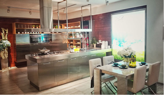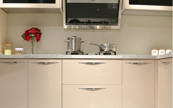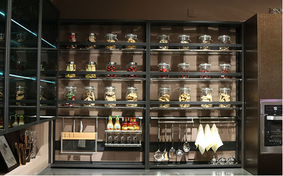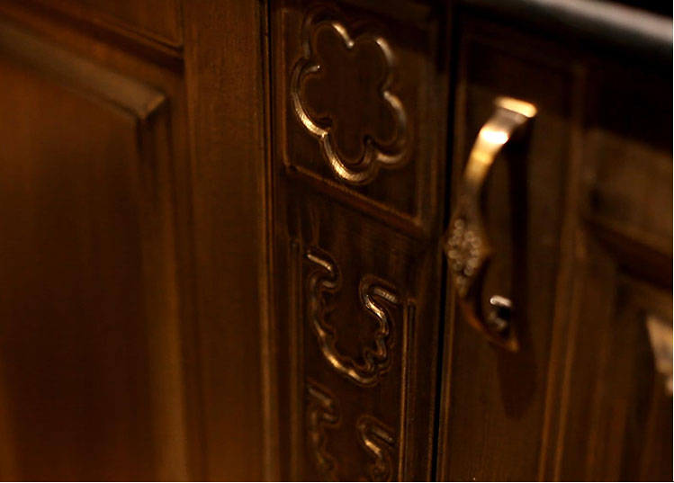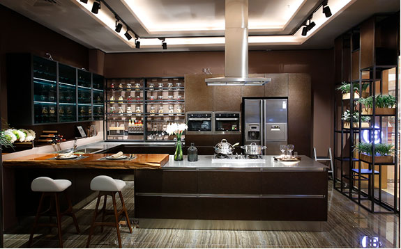 青古銅主色調(diào)的設(shè)計(jì)加上不銹鋼花紋模具壓型,讓原本冰冷的不銹鋼櫥柜表現(xiàn)出古樸的風(fēng)格。